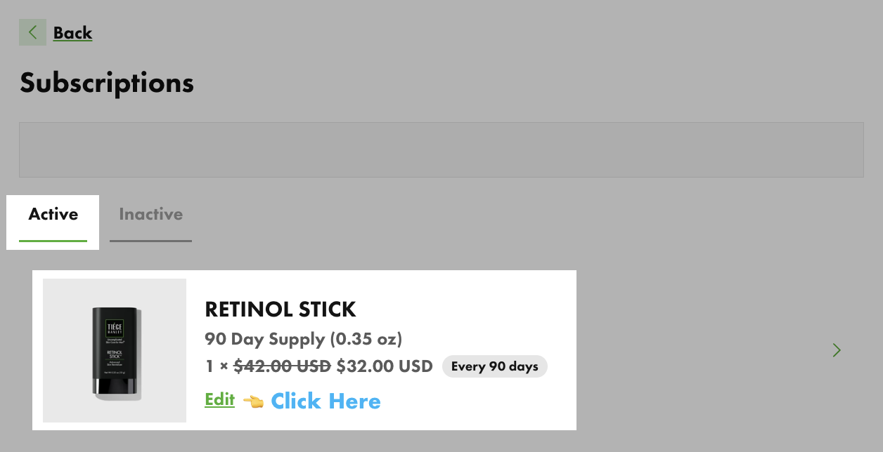 Click the Subscriptions tab to see Active or Inactive subscriptions.